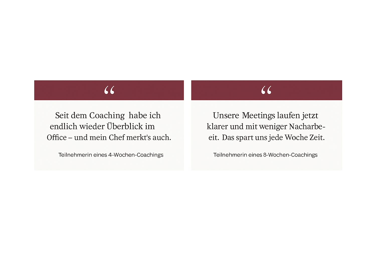 Ergebnis: Nach vier Wochen arbeitete sie 30 % strukturierter und gewann täglich rund 45 Minuten – der Chef merkte den Unterschied sofort.